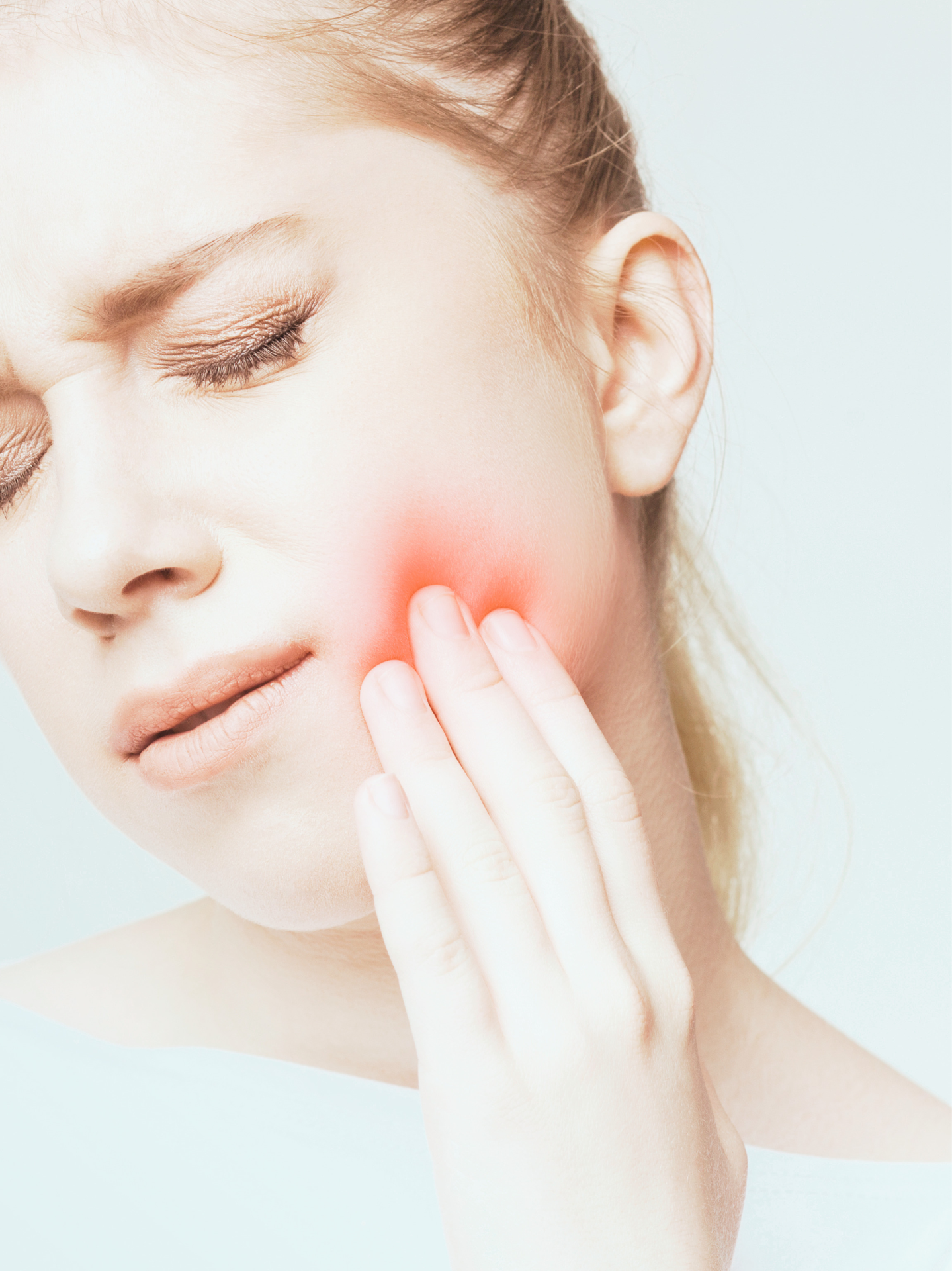 Kieferschmerzen: Schmerzen beim Kauen, Öffnen des Mundes oder Kieferknacken.